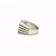 Satin pewter ring band with handsome etched parallel lines shoulder design. Vintage style setting frames sand enamel turquoise gemstone.