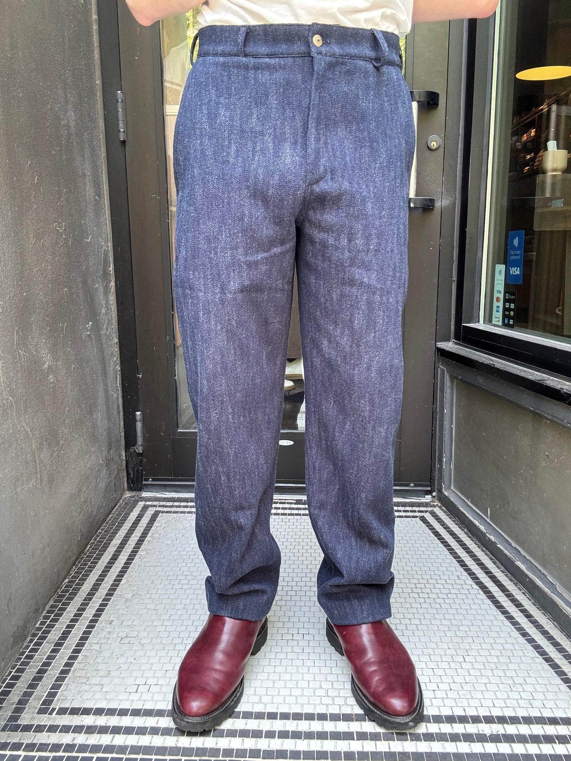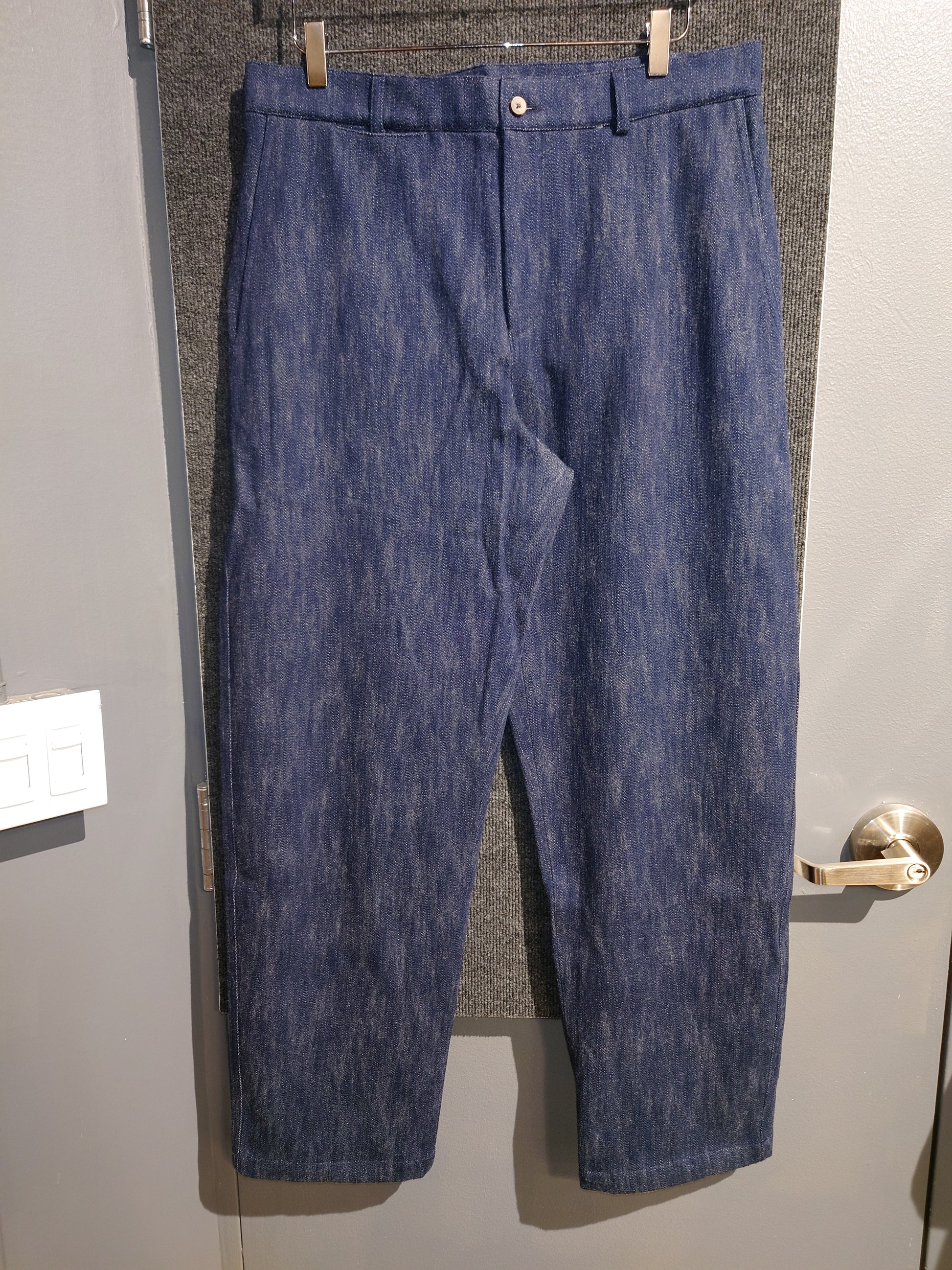 These vintage-inspired French carpenter trousers feature a distinctive balloon fit that offers generous comfort and freedom of movement. Crafted from a cotton-wool blend with a slubby texture, they combine durability with a refined tactile quality. Practical slash pockets enhance functionality, making these trousers a sophisticated choice for those seeking both style and ease in their wardrobe.