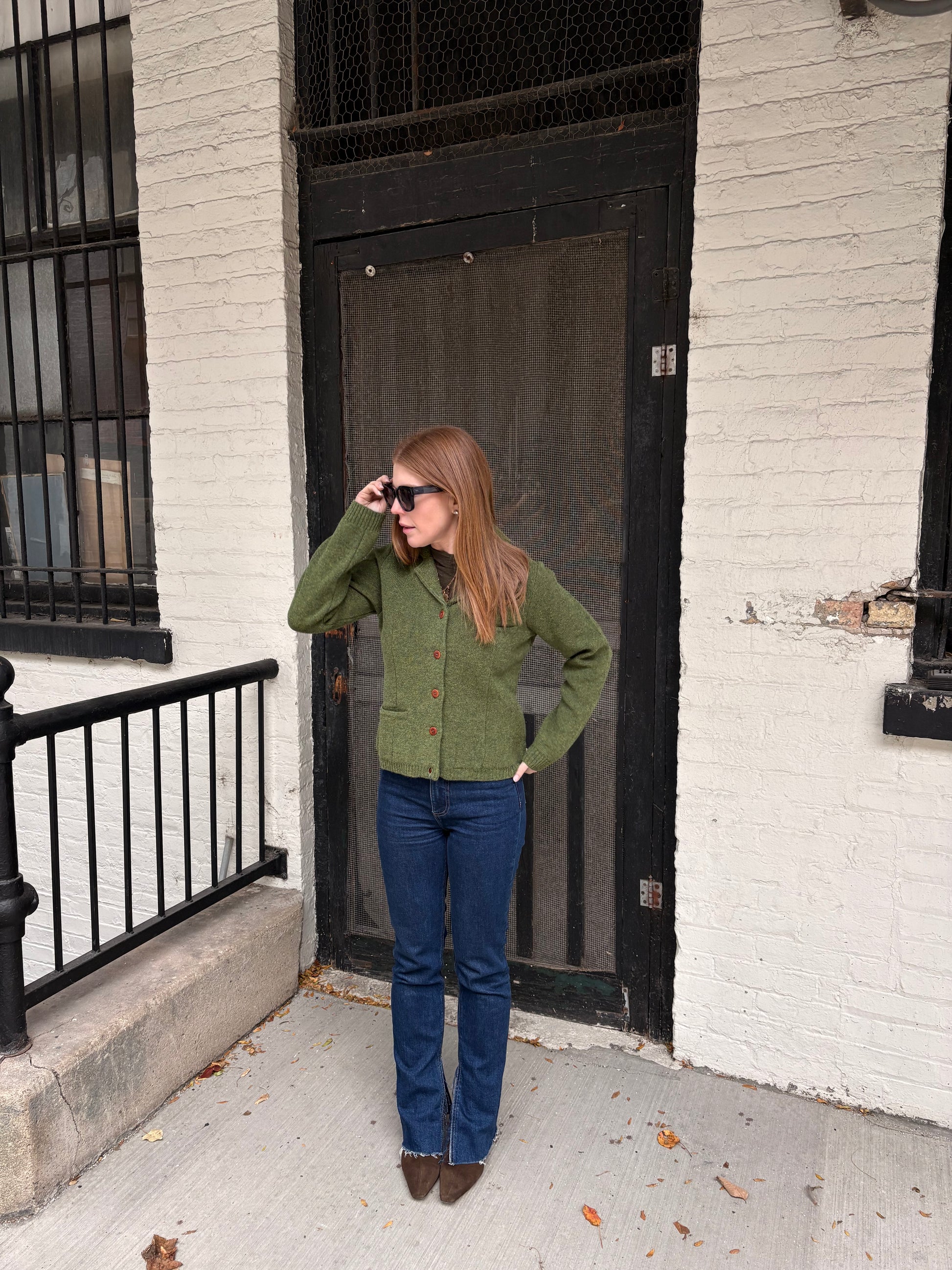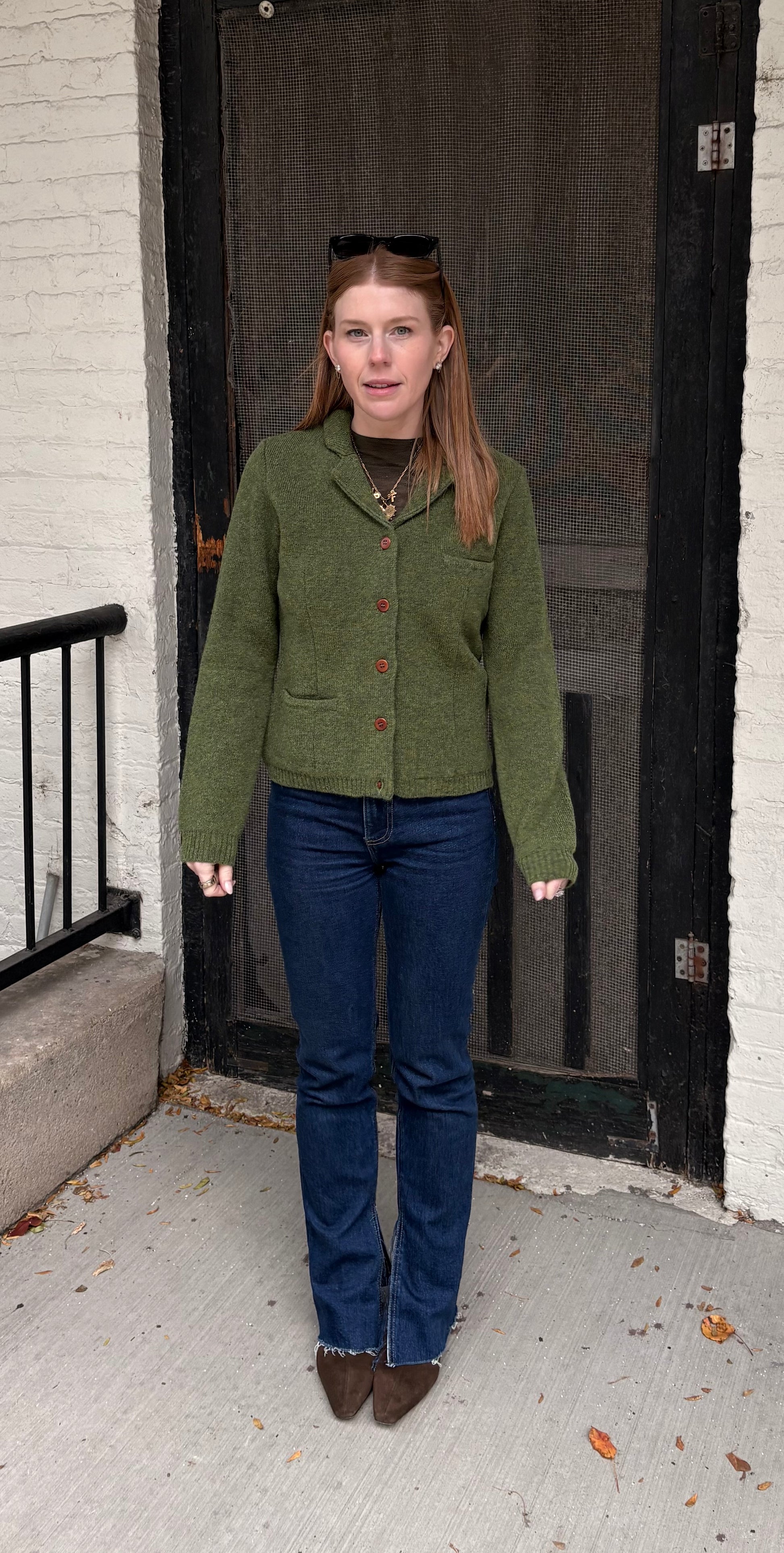 Heavy 18 ounce cropped women’s heritage jackets made in Tuscany. Super cute, cozy, and built to last for life. These are not itchy. Grass green and blue. 100% natural fibers. Made for Max Rohr. Italian product. Great for layering under a big technical coat or terrific on its own in the fall or early spring.