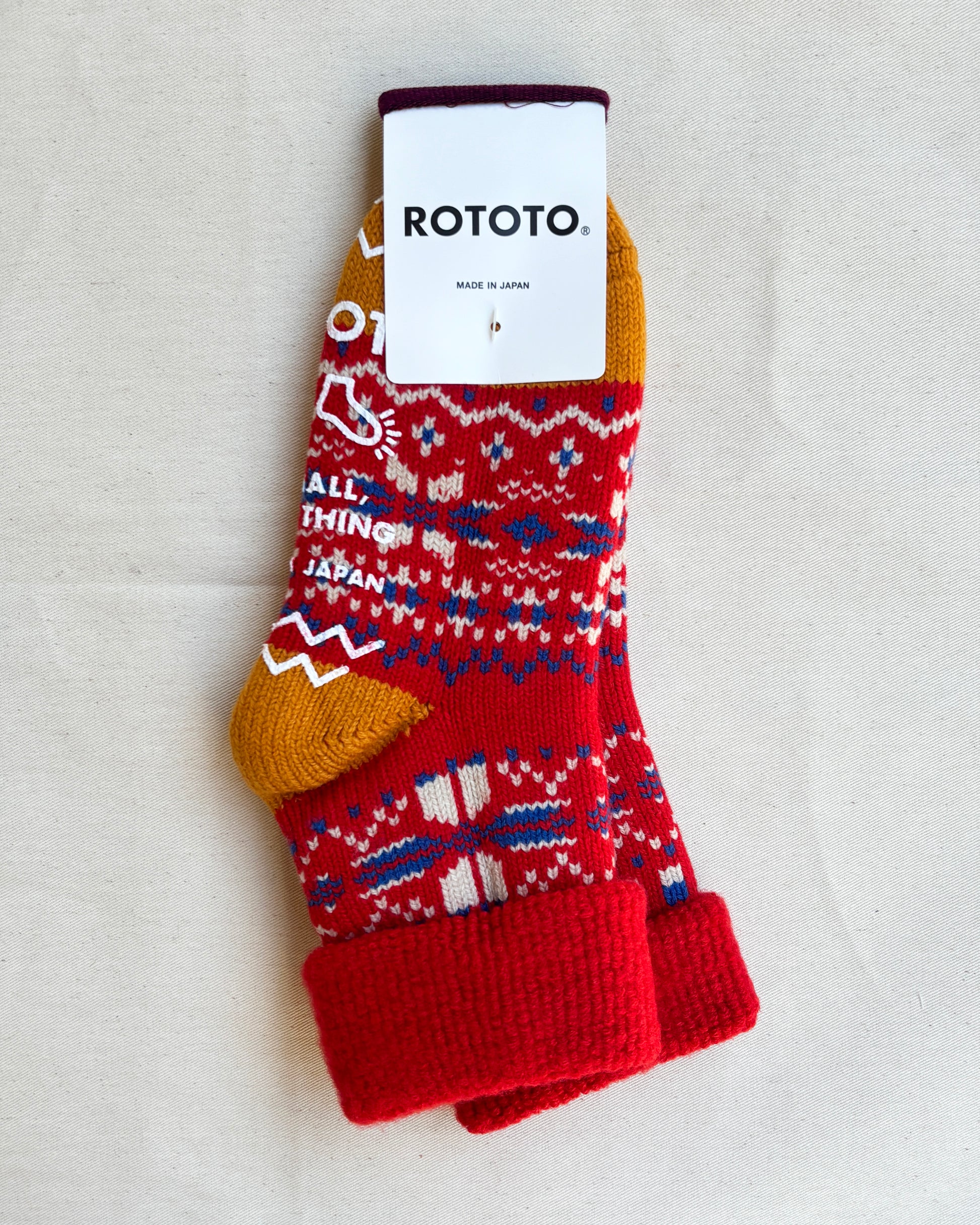 Rototo Socks are made in Nara Prefecture which has been Japan's largest sock producing region since the 43rd year of the Meiji Era (1910), when a man there visited the United States to purchase a machine for sewing socks. Woven using old-fashioned sewing machines, Rototo makes "consumables that we can love for a lifetime."