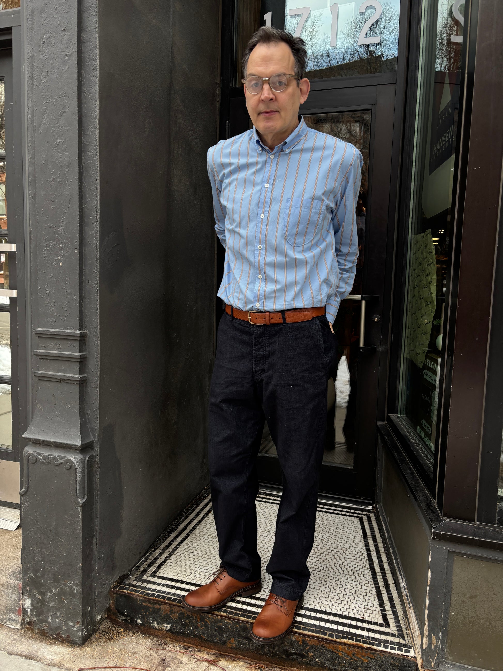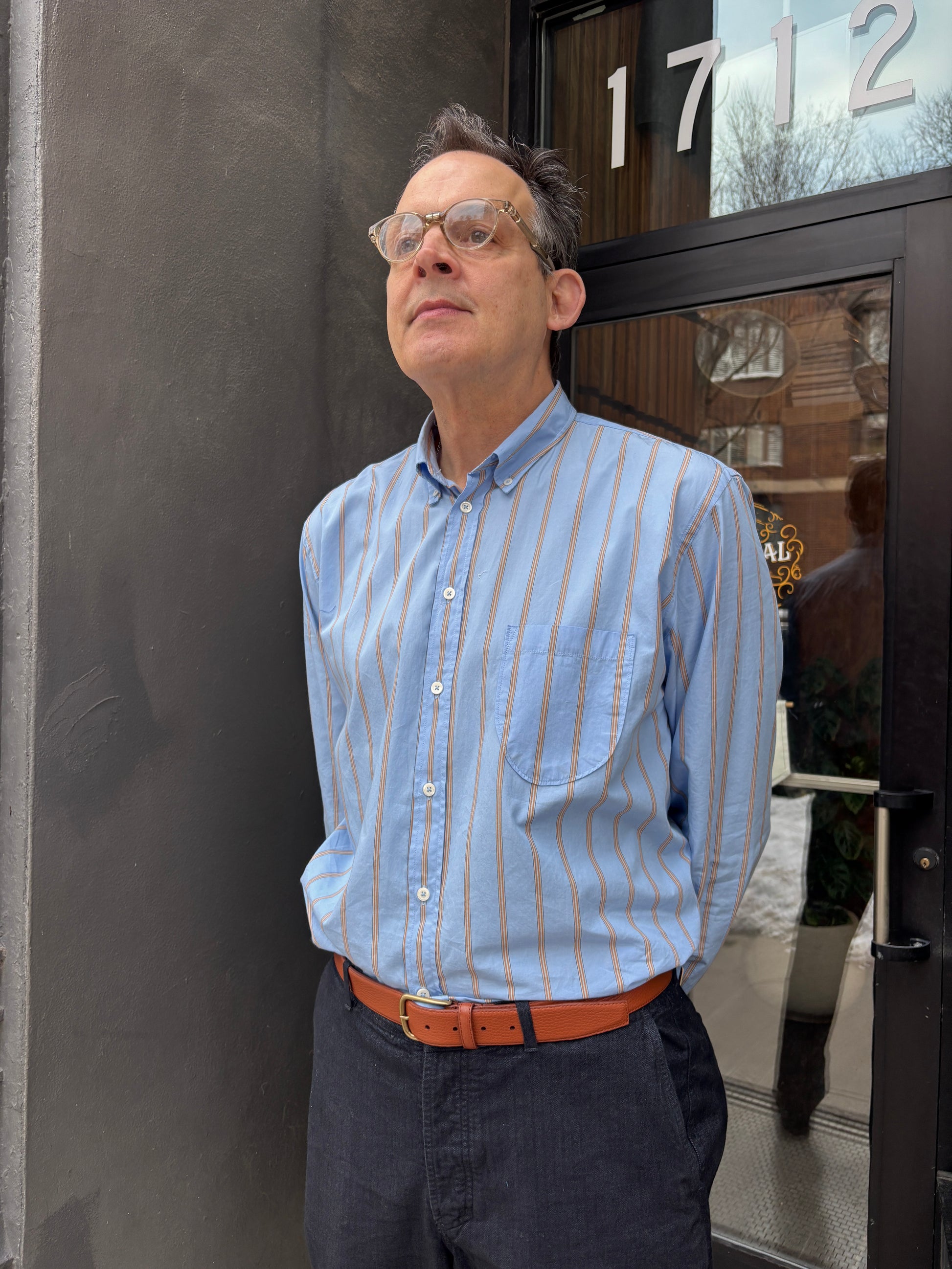 The Universal Works Lazy Day Shirt offers a relaxed fit designed for comfort and ease of movement. It features a classic button-down collar and an asymmetrical chest pocket that adds a subtle, distinctive detail. The back yoke with a box pleat enhances mobility and ensures a tailored drape. This shirt combines thoughtful design elements with practical comfort, making it a versatile addition to any wardrobe.