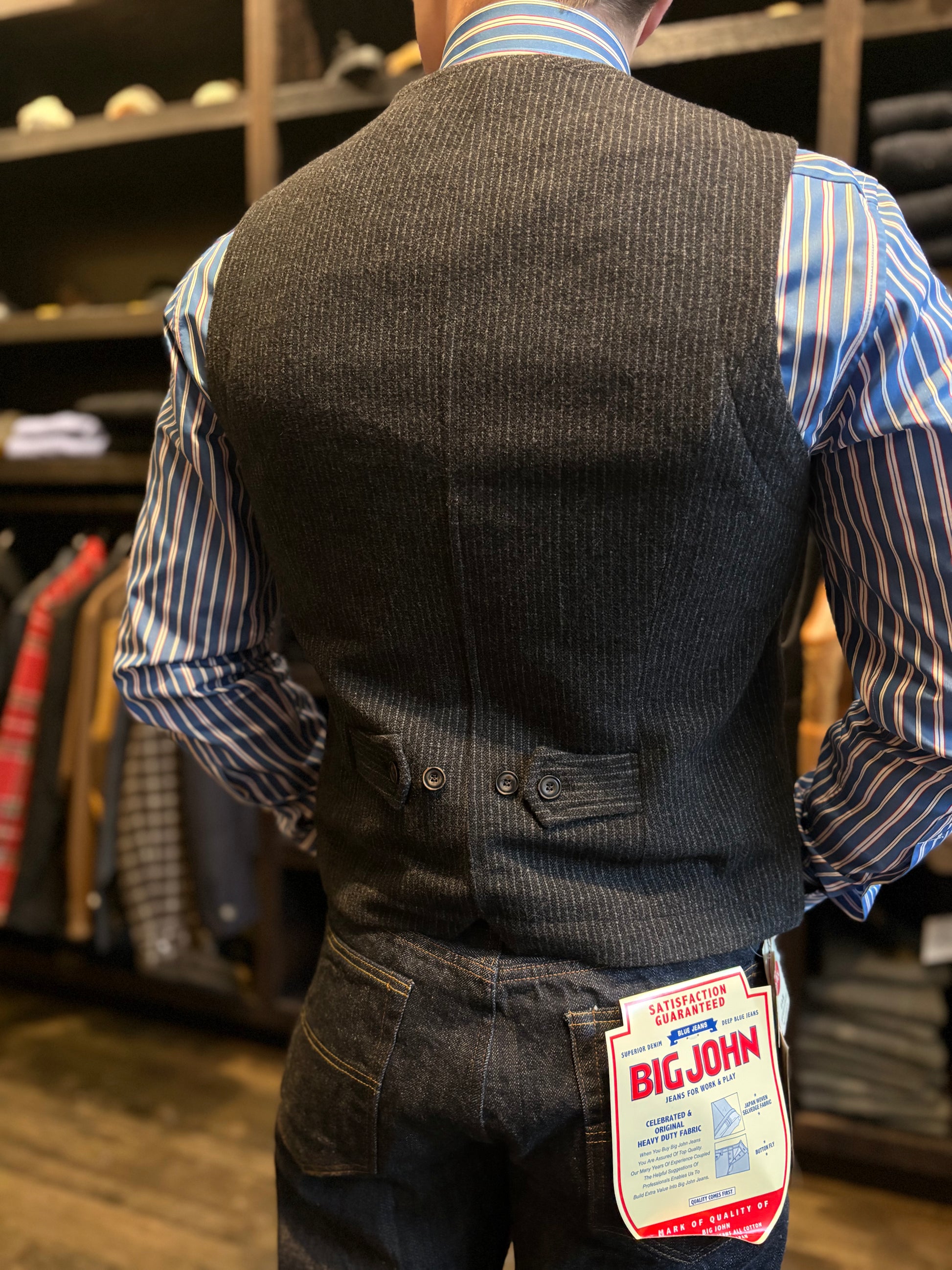 "The 6-button WILLIAM vest is a bit more dressed up than our other vests. It has a high-cut lapel and double welt pockets and a full lining. There are two buttoned adjusters at the back to alter the size. It can be worn separately or as part of our well-known casual looking three-piece suits.